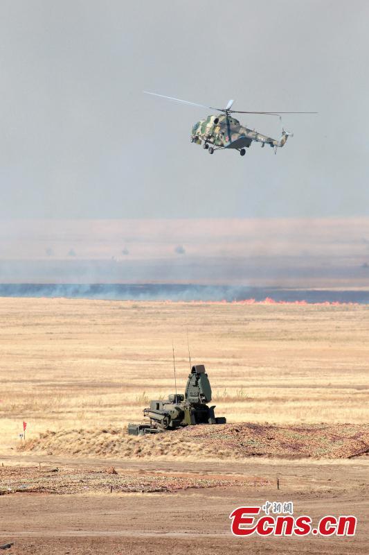 Photo taken on September 15, 2021 shows the scene of the live-fire coordinated training session of the "Peace Mission 2021" in Orenburg, Russia, Sept. 15, 2021. (Photo: China News Service/Li Chun)