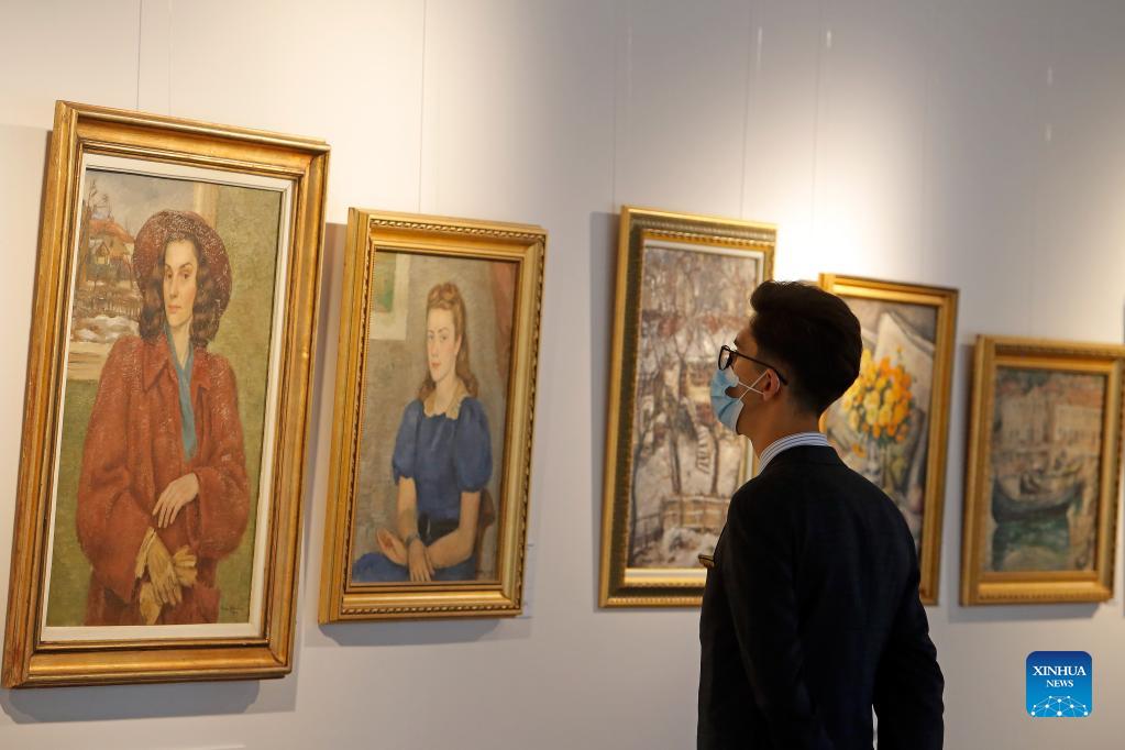 A man views artworks at Art Safari exhibition in Bucharest, Romania, on Sept. 16, 2021. Art Safari is an annual cultural event aimed at bringing classical and contemporary artworks closer to the public. (Photo by Cristian Cristel/Xinhua)