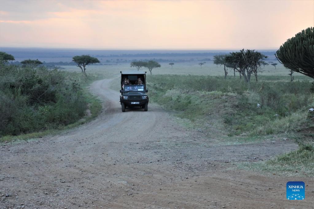 Tourists go sightseeing at the Masai Mara National Reserve, Kenya, Aug. 30, 2021. Kenya is seeking to lure more visitors for the remainder of the year amid the recovery of the global travel sector. For the first six months of 2021, the country received 305,635 foreign travelers, according to Najib Balala, cabinet secretary of Ministry of Tourism and Wildlife. (Xinhua/Dong Jianghui)