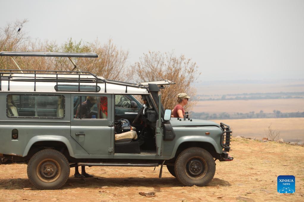 Tourists go sightseeing at the Masai Mara National Reserve, Kenya, Aug. 30, 2021. Kenya is seeking to lure more visitors for the remainder of the year amid the recovery of the global travel sector. For the first six months of 2021, the country received 305,635 foreign travelers, according to Najib Balala, cabinet secretary of Ministry of Tourism and Wildlife. (Xinhua/Dong Jianghui)