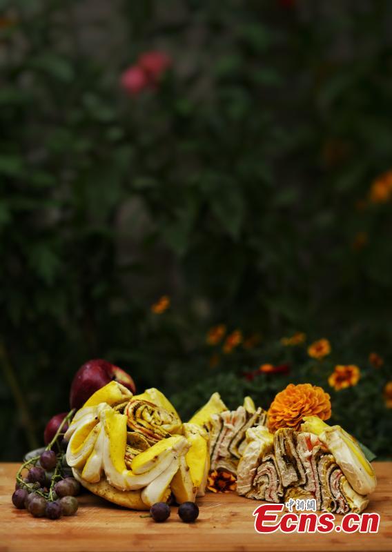 Photo shows rose-shaped multi-layer mooncakes in Yuzhong County, northwest China's Gansu Province. (Photo: China News Service/Zhang Wen)