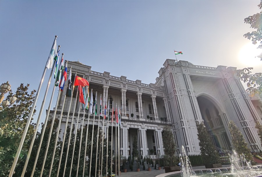 Photo taken on Sept. 16, 2021 shows Nauruz Palace, the venue of the Shanghai Cooperation Organization (SCO) summit in Dushanbe, capital of the Republic of Tajikistan. (Xinhua/Ma Dewu)