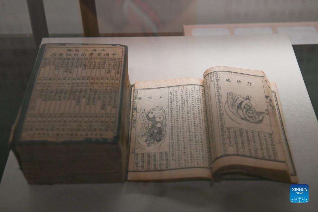 Photo taken on Sept. 17, 2021 shows ancient medical documents displayed during an exhibition featuring traditional Chinese medicine relics in Chengdu Museum in Chengdu, capital of southwest China's Sichuan Province. The exhibition, which kicked off here on Friday, showcases more than 300 traditional Chinese medicine-related relics. (Xinhua/Xu Bingjie)