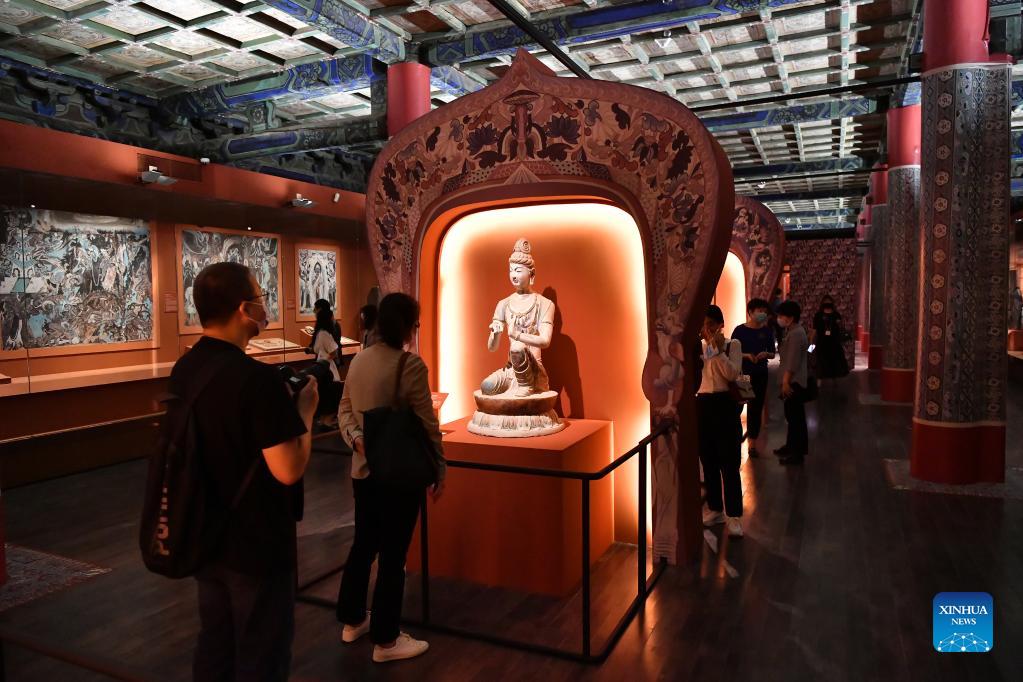 People visit an exhibition themed on Dunhuang culture at the Palace Museum, also known as the Forbidden City, in Beijing, capital of China, Sept. 17, 2021. (Xinhua/Li Xin)