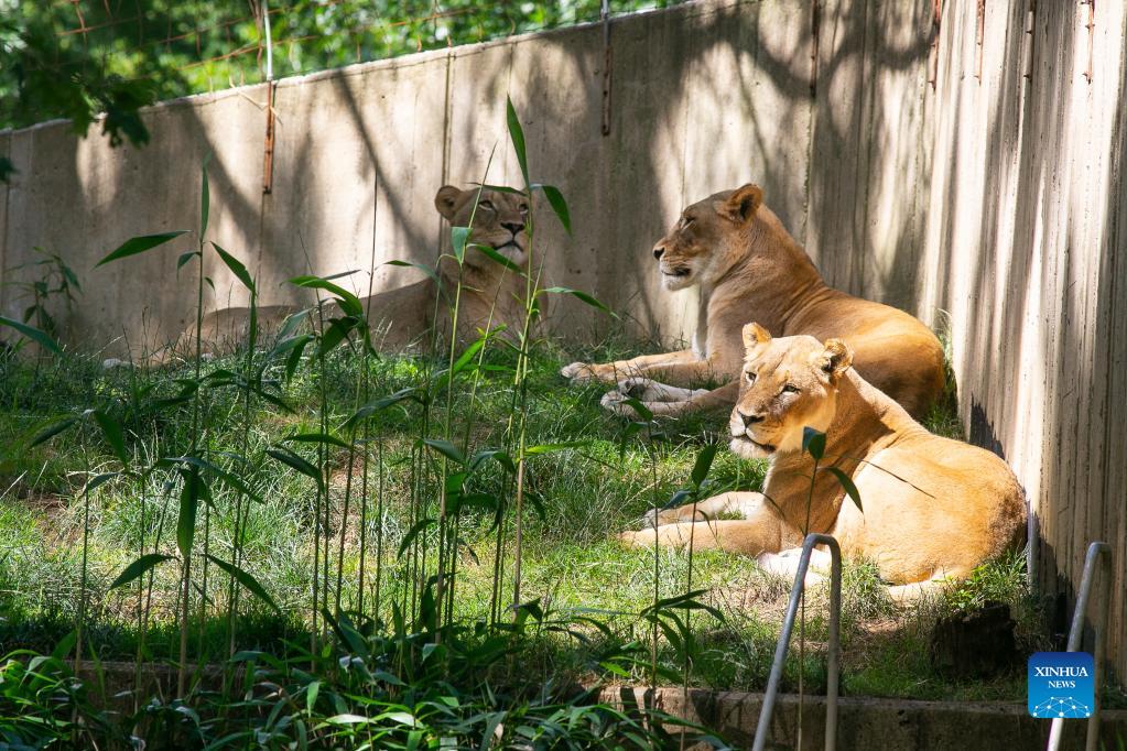 Undated photo provided by Smithsonian's National Zoo shows three lions at Smithsonian's National Zoo in Washington, D.C., the United States. All of the lions and tigers living in the Smithsonian's National Zoo in U.S. capital Washington, D.C. have tested presumptive positive for coronavirus, the zoo said in a press release on Friday. (Smithsonian's National Zoo/Handout via Xinhua)