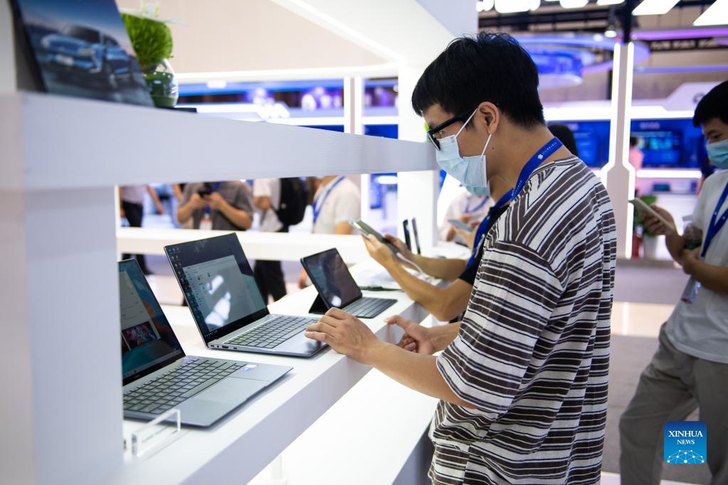 Visitors experience laptops at the 2021 World Computing Conference in Changsha, central China's Hunan Province, Sept. 17, 2021. (Xinhua/Chen Sihan)