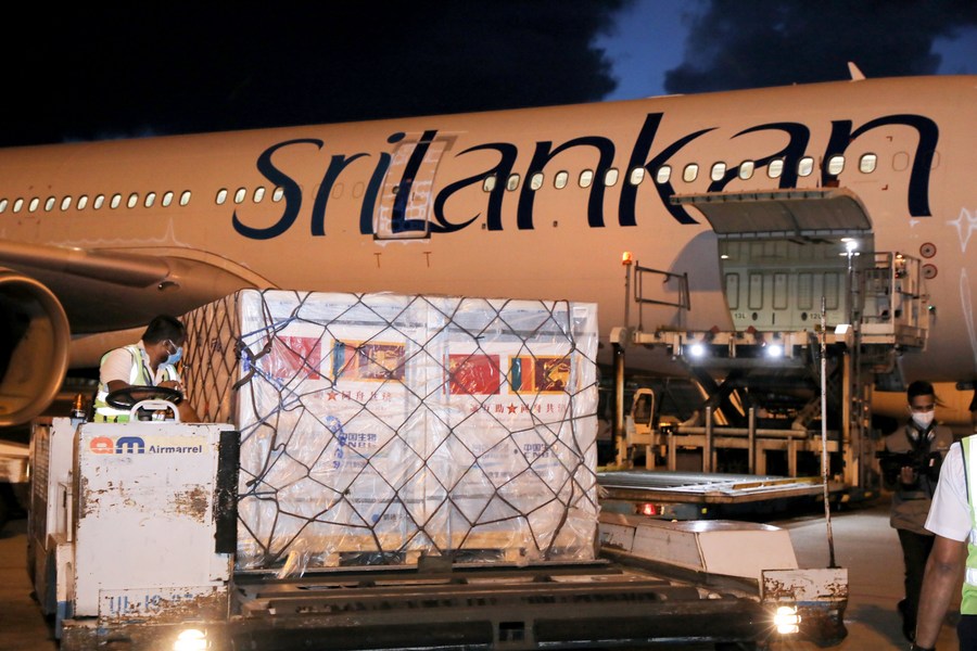 Boxes containing Sinopharm COVID-19 vaccines donated by the People's Liberation Army (PLA) of China are seen at Bandaranaike International Airport in Colombo, Sri Lanka, on Aug. 28, 2021. (Ministry of Defense of Sri Lanka/Handout via Xinhua)