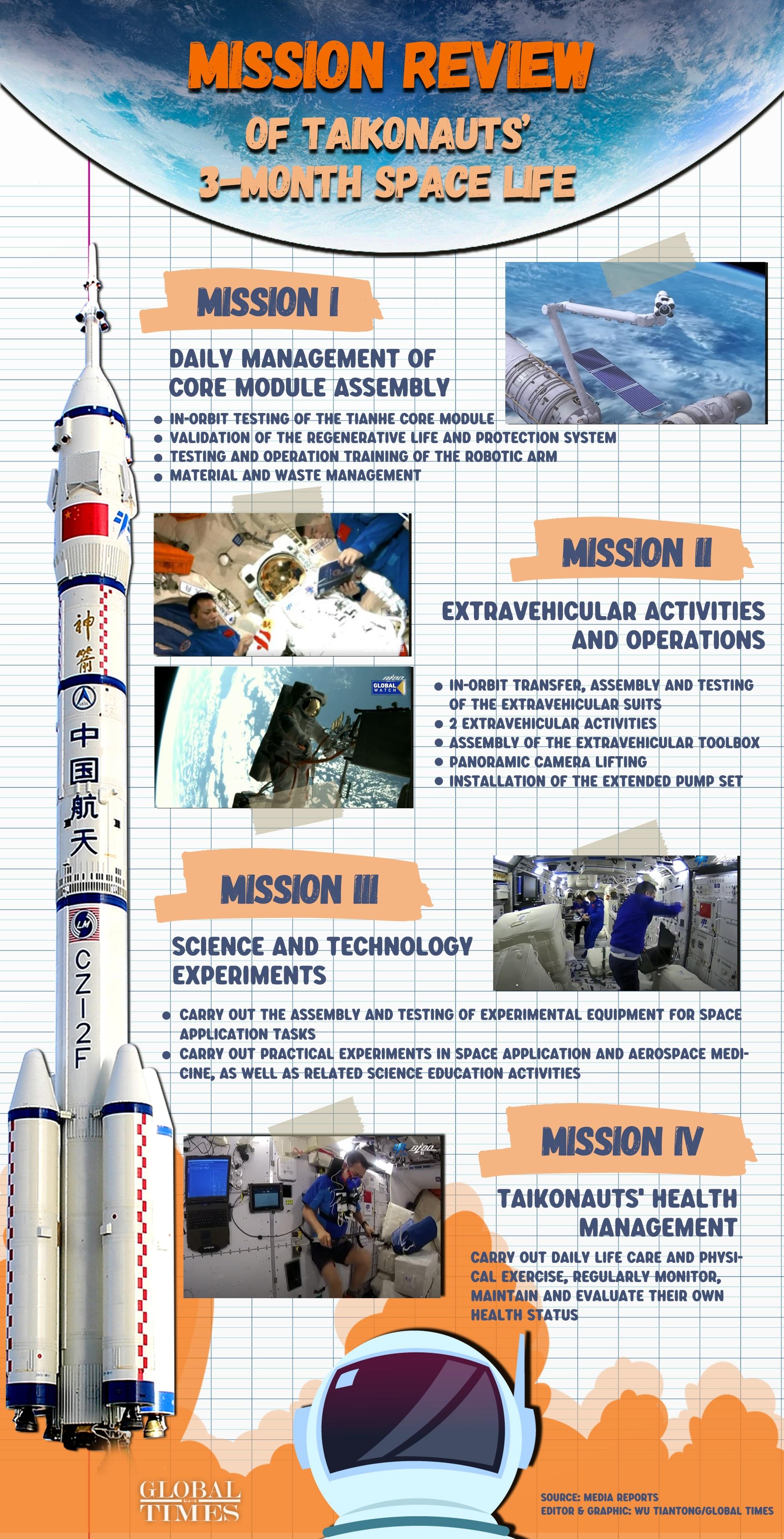 Mission review of Taikonauts' 3-month space life Graphic: Wu Tiantong/GT