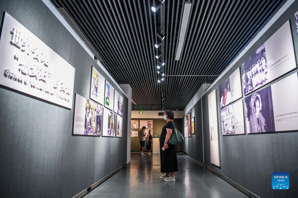 People visit the exhibition of the Crimes of Japanese "Comfort Women" System at the Memorial Hall of the Victims in Nanjing Massacre by Japanese Invaders in Nanjing, capital of east China's Jiangsu Province, Sept. 18, 2021. The exhibition of the Crimes of Japanese "Comfort Women" System opened in Nanjing on Saturday. (Xinhua/Li Bo)