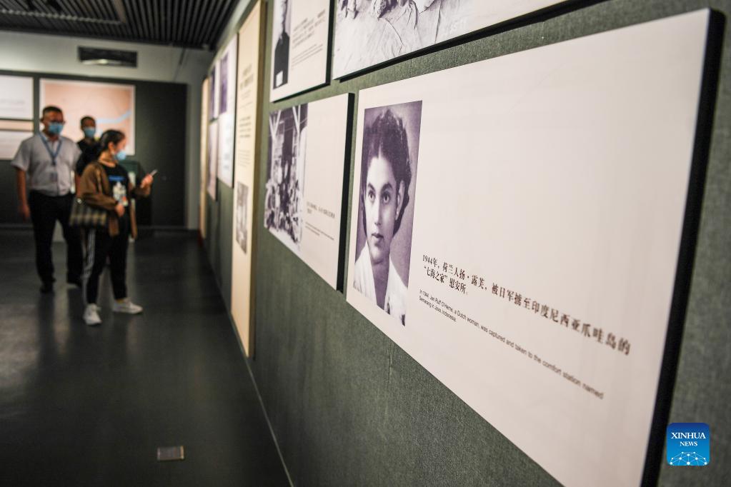 People visit the exhibition of the Crimes of Japanese "Comfort Women" System at the Memorial Hall of the Victims in Nanjing Massacre by Japanese Invaders in Nanjing, capital of east China's Jiangsu Province, Sept. 18, 2021. The exhibition of the Crimes of Japanese "Comfort Women" System opened in Nanjing on Saturday. (Xinhua/Li Bo)
