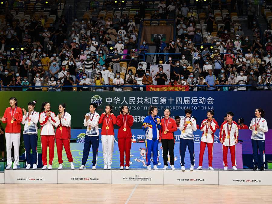 Women's basketball United Team players at the awarding ceremony of China's 14th National Games in Xi'an, Shaanxi Province on Sept. 14, 2021. (Xinhua/Wang Xi)