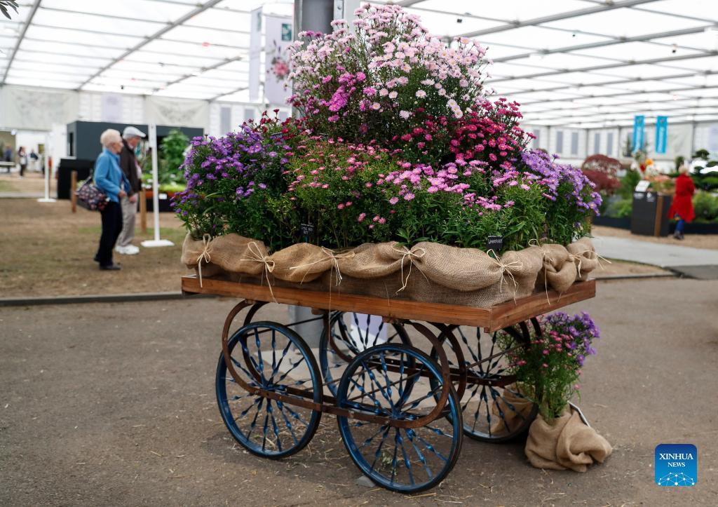 Flowers are on display at the RHS (Royal Horticultural Society) Chelsea Flower Show press day in London, Britain, on Sept. 20, 2021. The annual RHS Chelsea Flower Show will open to the public here from Sept. 21 to 26. (Xinhua/Han Yan)