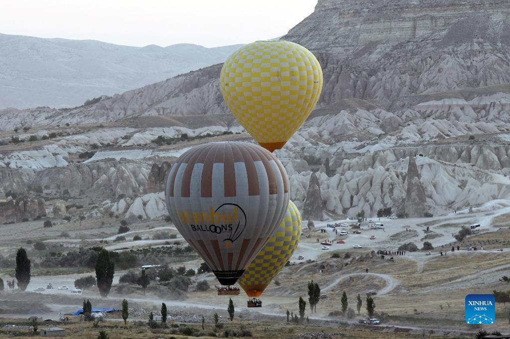 Hot-air balloons fly over Cappadocia, Turkey, Sept. 20, 2021. (Photo by Mustafa Kaya/Xinhua)