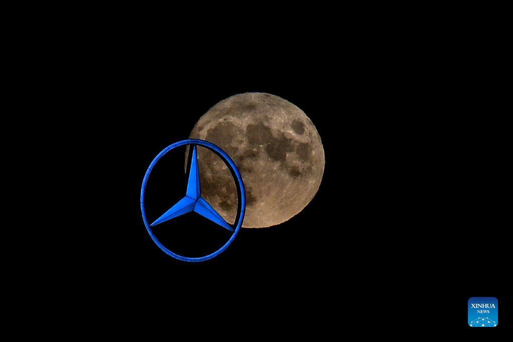 Photo taken on Sept. 20, 2021 shows a full moon in Skopje, North Macedonia. (Photo by Tomislav Georgiev/Xinhua)