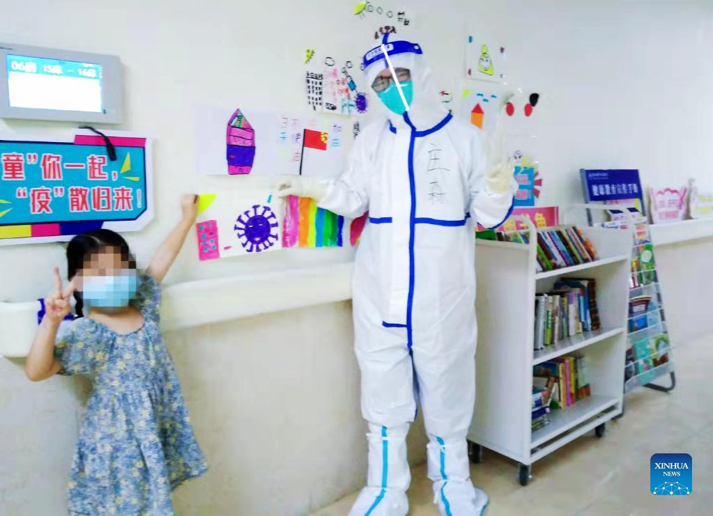 Medical workers company with child patients of COVID-19 during Mid-autumn festival in Putian, SE China's Fujian (6)