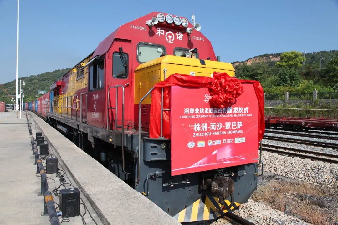 The train marked the launch of a new sea-rail logistics route linking cities in and around Hunan province and African countries, effectively shortening the shipping time and lowering logistics costs.