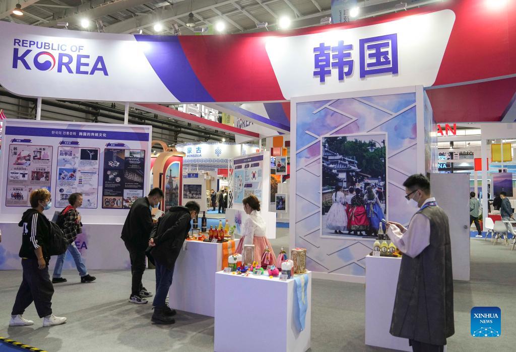 People visit the 13th China-Northeast Asia Expo in Changchun, northeast China's Jilin Province, on Sept. 23, 2021. The 13th China-Northeast Asia Expo is held online and offline from Sept. 23 to 27 in Changchun, capital city of northeast China's Jilin Province. (Xinhua/Xu Chang)
