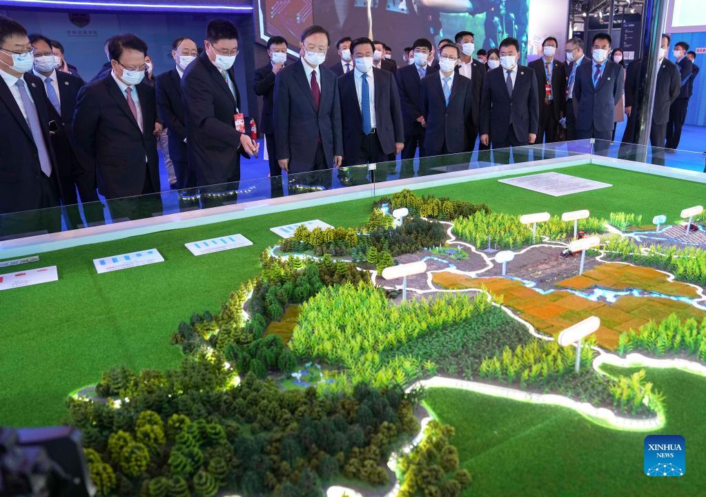 Yang Jiechi, a member of the Political Bureau of the Communist Party of China (CPC) Central Committee and director of the Office of the Foreign Affairs Commission of the CPC Central Committee, visits the exhibition area of the 13th China-Northeast Asia Expo in Changchun, capital city of northeast China's Jilin Province, Sept. 23, 2021. (Xinhua/Xu Chang)