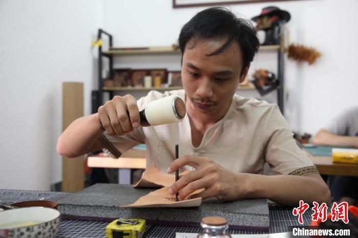 "The art of leather carving originated in China, but it is a pity that the skills are now mostly being mastered by foreign artists. I will carry forward the precious techniques of leather carving," said Huang.