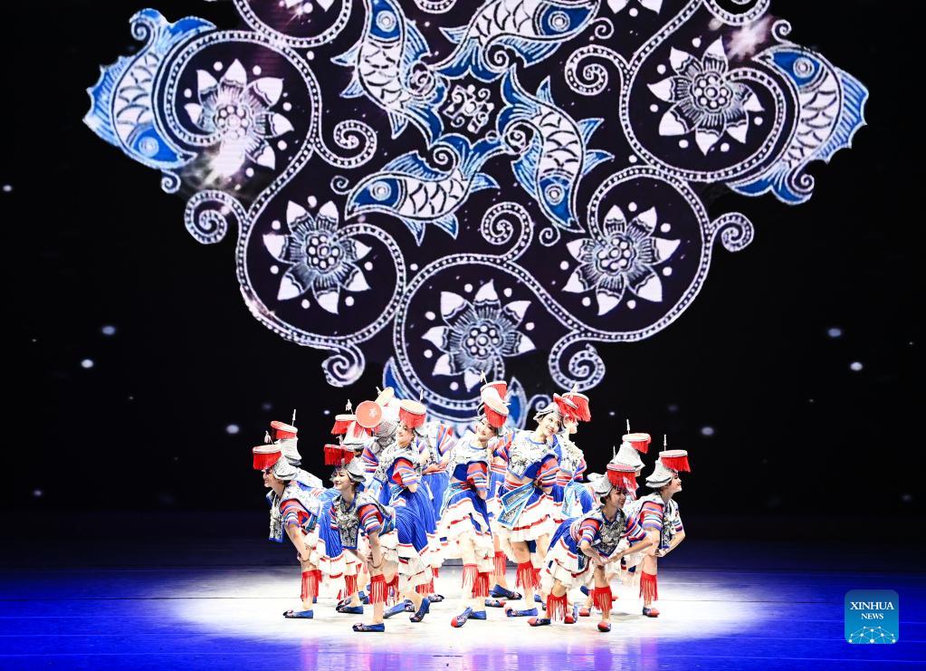 Artists perform at the closing gala of the sixth ethnic minority art festival in Beijing, capital of China, Sept. 24, 2021. The festival, which kicked off on Aug. 31, concluded here on Friday. (Xinhua/Li Xiang)