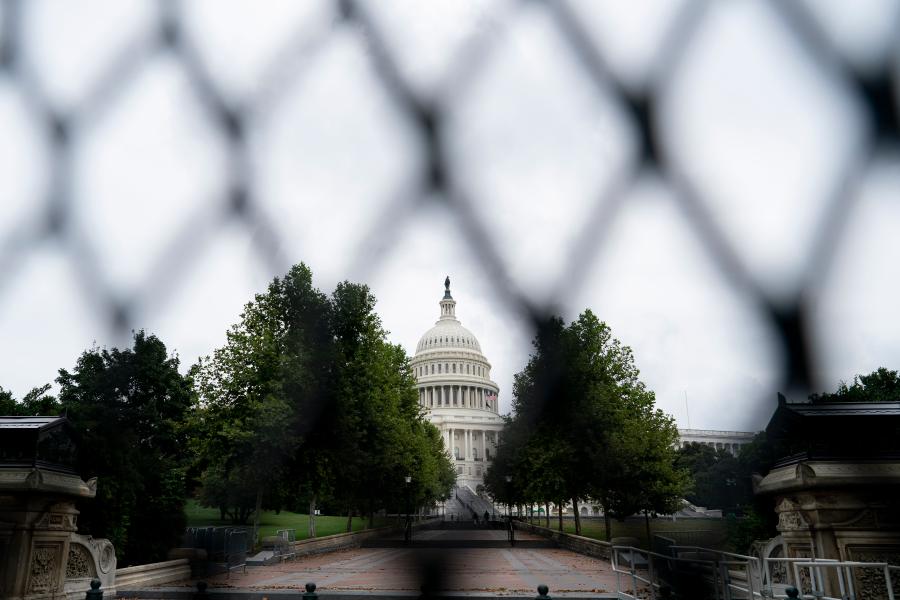 Photo taken on Sept. 17, 2021 shows the U.S. Capitol building, seen through a barrier fence, in Washington, D.C. (Xinhua/Liu Jie)