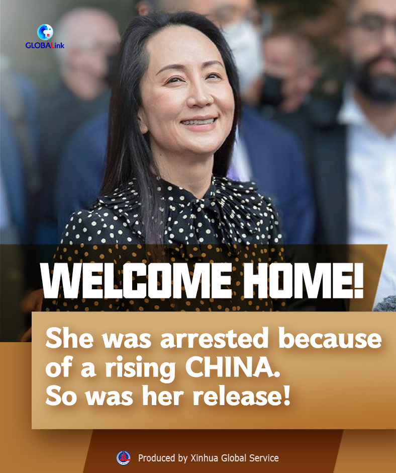 After the Chinese government's unremitting efforts, Meng left Canada on Sept. 24 local time and is returning on a charter flight organized by the Chinese government. She will soon reunite with her family.