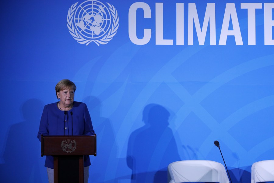 German Chancellor Angela Merkel addresses the UN Climate Action Summit at the UN headquarters in New York, Sept. 23, 2019. (Xinhua/Li Muzi)