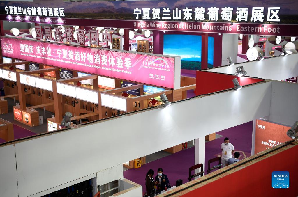 Photo taken on Sept. 25, 2021 shows the venue of the first China (Ningxia) International Wine Culture and Tourism Expo in Yinchuan, northwest China's Ningxia Hui Autonomous Region. The first China (Ningxia) International Wine Culture and Tourism Expo is held from Sept. 25 to 27. (Xinhua/Wang Peng)
