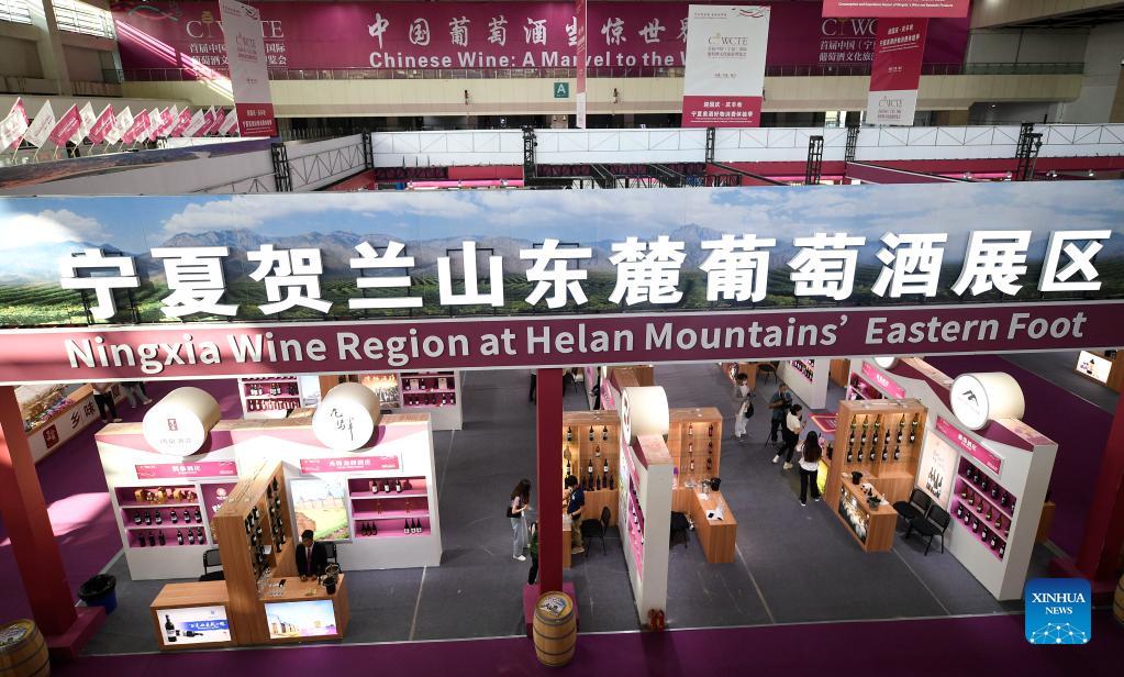 Photo taken on Sept. 25, 2021 shows the venue of the first China (Ningxia) International Wine Culture and Tourism Expo in Yinchuan, northwest China's Ningxia Hui Autonomous Region. The first China (Ningxia) International Wine Culture and Tourism Expo is held from Sept. 25 to 27. (Xinhua/Wang Peng)