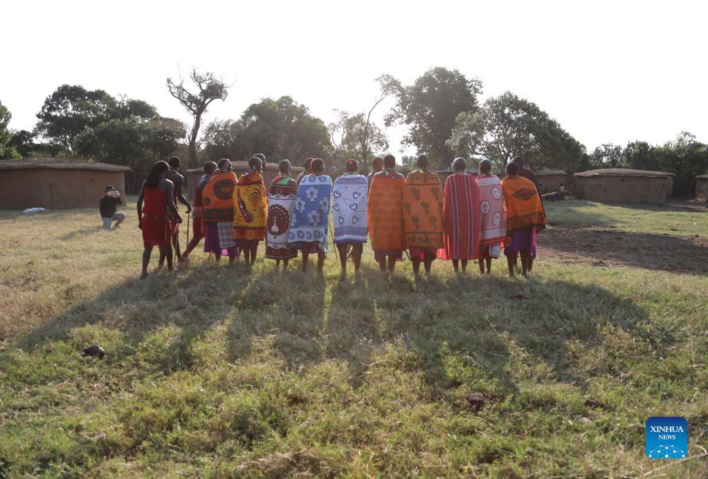 Maasai people perform at Maasai tribe near the Maasai Mara National Reserve, Kenya, Aug. 29, 2021. (Xinhua/Dong Jianghui)