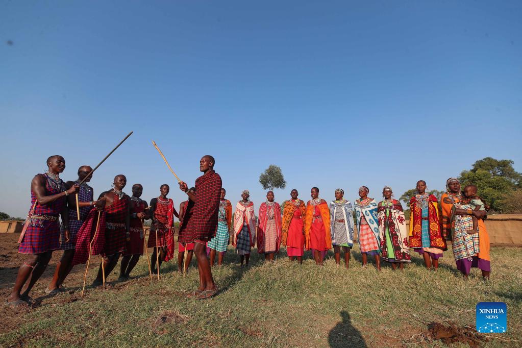 Maasai people perform at Maasai tribe near the Maasai Mara National Reserve, Kenya, Aug. 29, 2021. (Xinhua/Long Lei)