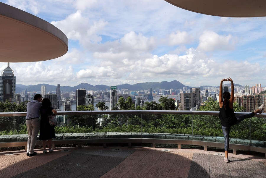 People visit the Peak Hong Kong in south China's Hong Kong, July 16, 2020. (Xinhua/Li Gang)