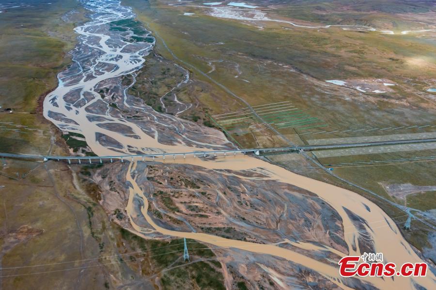 Aerial photo shows the Tongtian River, a main stream of the source of the Yangtze River in northwest China's Qinghai Province. (Photo/China News Service)