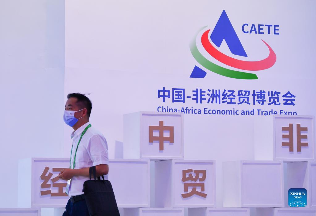 A staff member is seen during the second China-Africa Economic and Trade Expo held in Changsha, central China's Hunan Province, on Sept. 26, 2021. The four-day event, online and offline, themed "New Start, New Opportunities, and New Accomplishments," has attracted nearly 900 enterprises from nearly 40 African countries and China, according to the organizers. (Xinhua/Chen Zeguo)