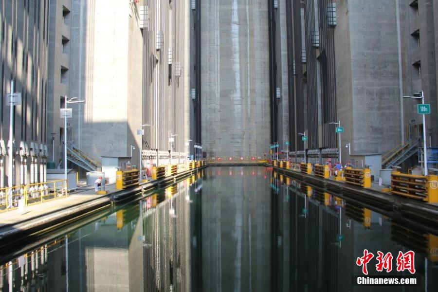 The world's largest permanent ship elevator resumes operation after overhaul at the Three Gorges Dam in central China’s Hubei Province, Sept. 25, 2021. (China News Service/Lv Caihong)