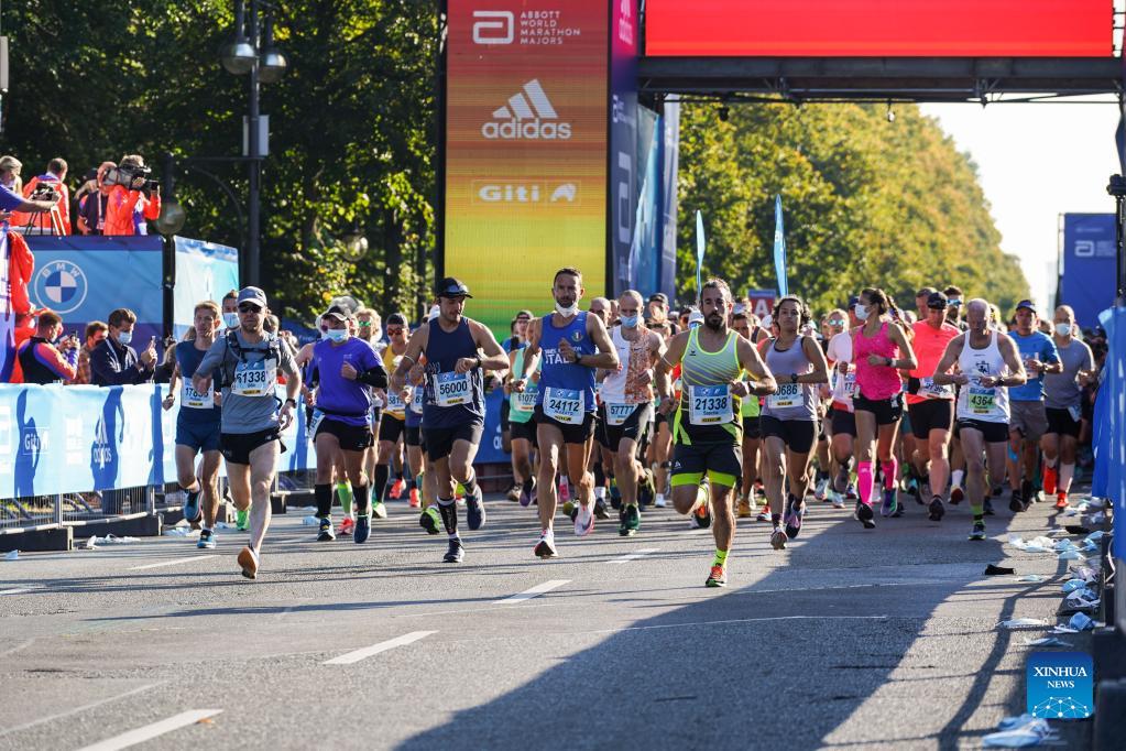Runners start during the Berlin Marathon 2021 in Berlin, capital of Germany, Sept. 26, 2021. (Photo by Stefan Zeitz/Xinhua)