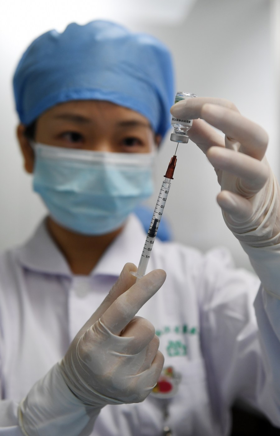 A medical worker prepares a dose of COVID-19 vaccine at a community health center in Qingxiu District of Nanning, south China's Guangxi Zhuang Autonomous Region, Aug. 27, 2021. (Xinhua/Lu Boan)