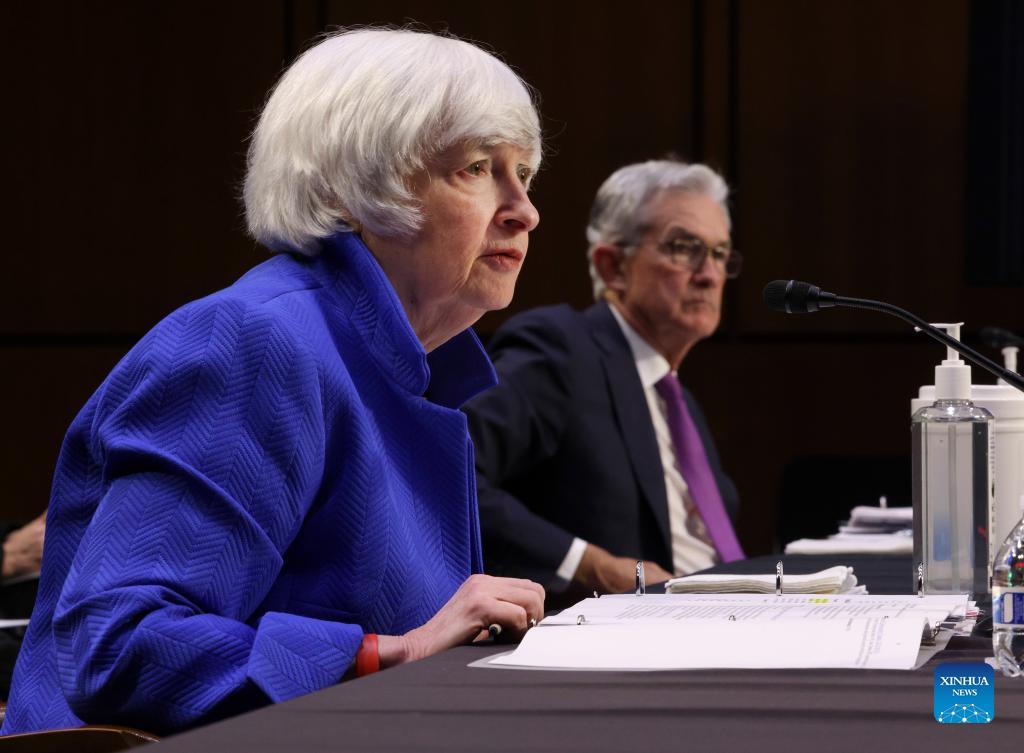 U.S. Treasury Secretary Janet Yellen (L) testifies during a Senate Banking, Housing, and Urban Affairs Committee hearing in Washington, D.C., the United States, on Sept. 28, 2021. U.S. Treasury Secretary Janet Yellen said on Tuesday that U.S. lawmakers have until Oct. 18 to raise or suspend the debt limit before the United States is expected to default on the national debt. (Kevin Dietsch/Pool via Xinhua)