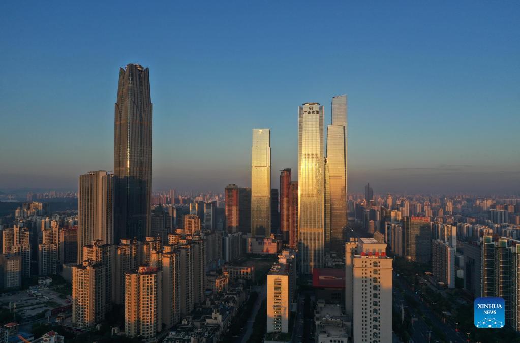 Aerial photo taken on Sept. 28, 2021 shows an early morning view of Nanning, capital of south China's Guangxi Zhuang Autonomous Region. (Xinhua/Huang Xiaobang)