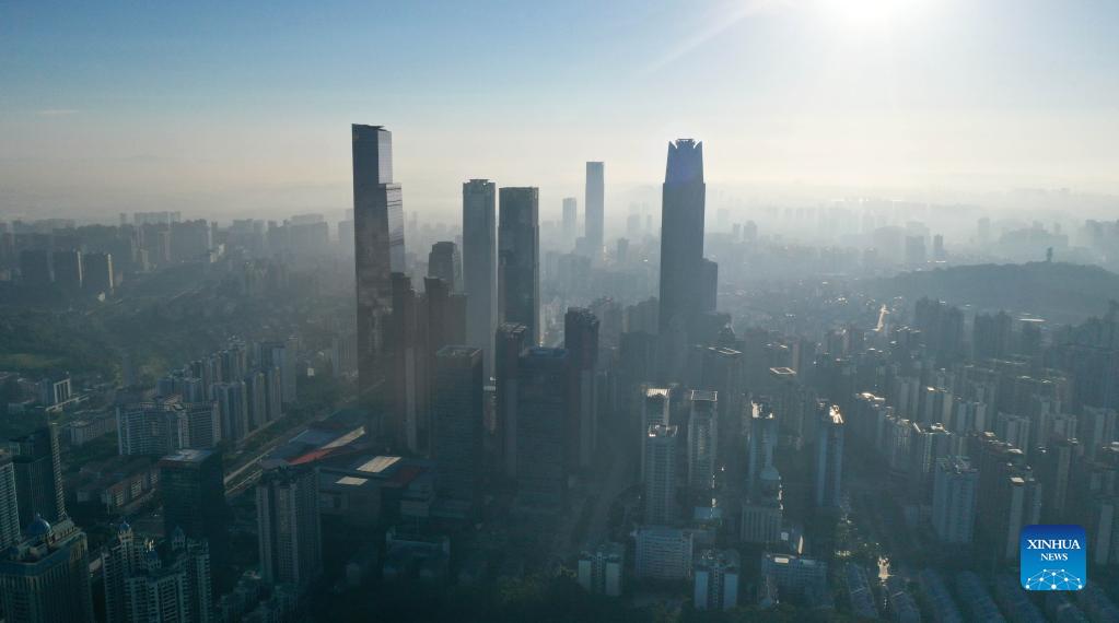 Aerial photo taken on Sept. 28, 2021 shows an early morning view of Nanning, capital of south China's Guangxi Zhuang Autonomous Region. (Xinhua/Huang Xiaobang)