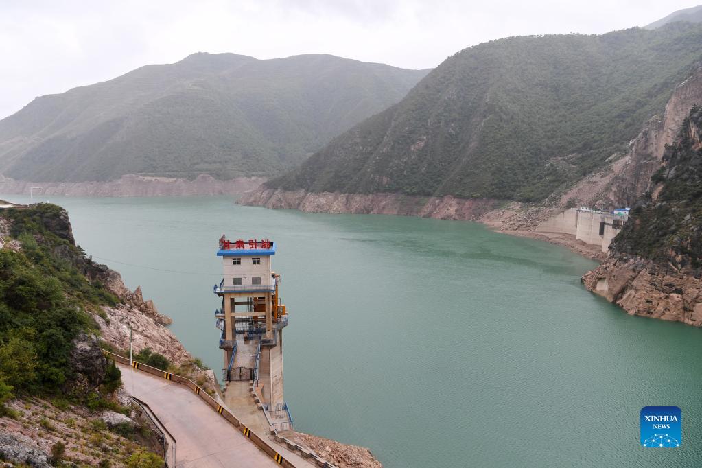 Photo taken on Sept. 3, 2021 shows a water intake facility for a water diversion project designed to deliver water from the Taohe River, a major tributary of the Yellow River, to areas suffering severe water shortages in the central part of Gansu, in Zhuoni County, northwest China's Gansu Province. A major water diversion project in Gansu has been completed as the second phase of the project began supplying water Tuesday. The project is expected to alleviate water shortages for more than six million people in the province, local authorities said Tuesday. (Xinhua/Fan Peishen)