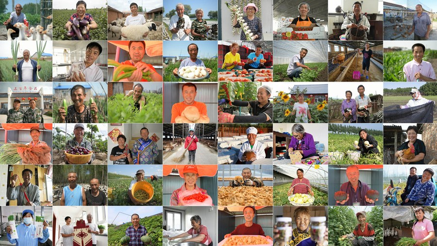 Combo photo taken between July and October 2020 shows villagers, who used to be registered as impoverished households in over 20 cities and counties of northeast China's Heilongjiang Province, smiling as they have benefited from the businesses under poverty alleviation program. (Xinhua)