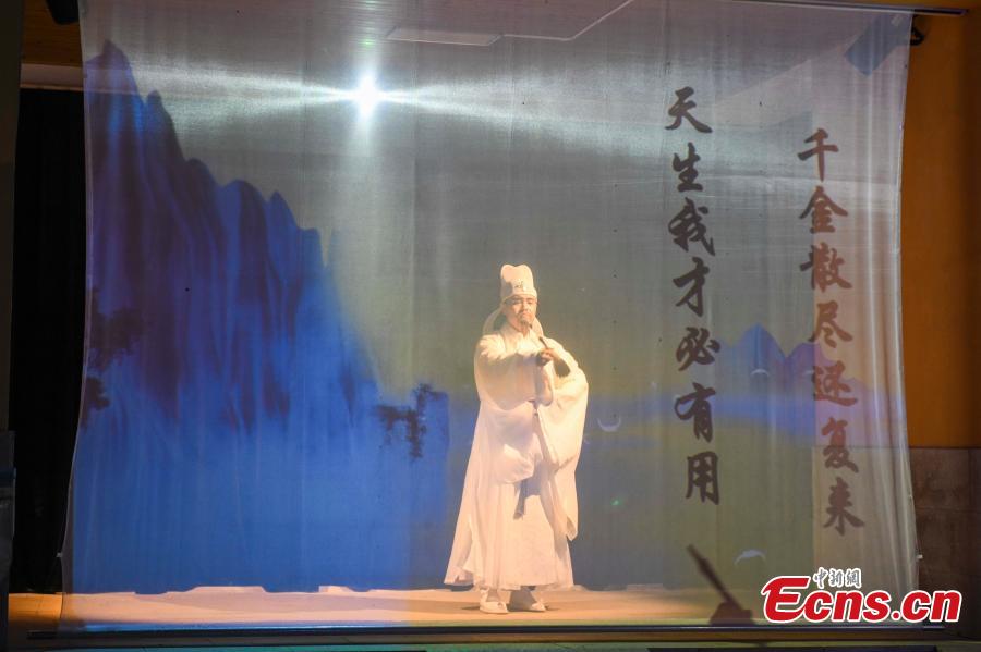 A 5D immersive light show displaying renowned poetry of Tang Dynasty (618-907) and the iambic verses of Song Dynasty (960-1279) debuts at a cultural industrial park in Changsha, China's Hunan Province, Sept. 28, 2021. (China News Service/Yang Huafeng)