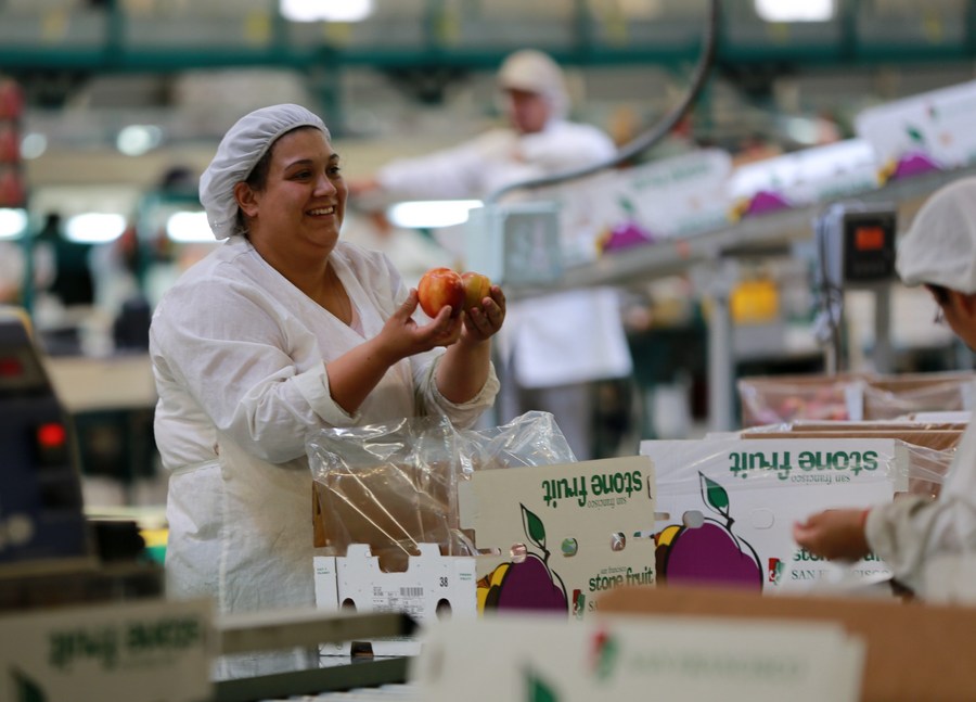 Workers work in a factory of Agricola Garces in Mostazal, Chile on Jan. 19, 2018.(Xinhua/Xu Rui)