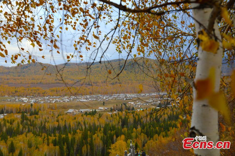 Photo taken on Oct. 7, 2021 showw white birches and pine trees decorate Burqin County in Xinjiang Autonomous region, like a natural oil painting on the land. The county has welcomed the most beautiful season of the year.(Photo:China News Service/Liu Shihe)