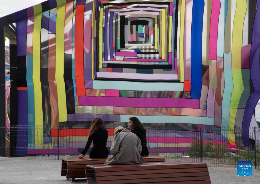 People visit the Contemporary Istanbul art fair in Istanbul,Turkey, on Oct. 8, 2021. Contemporary Istanbul, Turkey's leading art fair, hosted the 16th edition at its new venue, an ancient shipyard, amid the COVID-19 pandemic. The event, which kicked off on Tuesday, will run until Oct. 10. (Photo by Osman Orsal/Xinhua)
