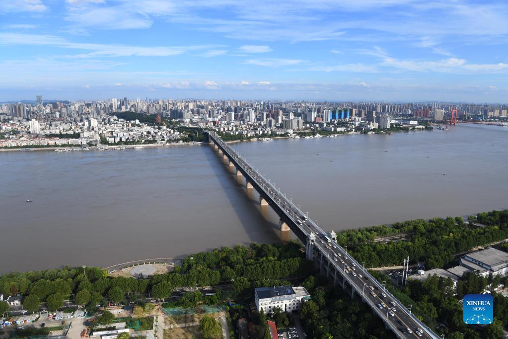 Photo taken on Aug. 14, 2020 shows the Wuhan Yangtze River Bridge in Wuhan, central China's Hubei Province. The 1911 Revolution, starting with gunfire in Wuchang, now part of central China's Wuhan City, on Oct. 10, 1911, was the national democratic revolution launched by Chinese revolutionaries represented by Dr. Sun Yat-sen. The revolution brought down the Qing government and brought about the establishment of Asia's first republic. (Xinhua/Cheng Min)