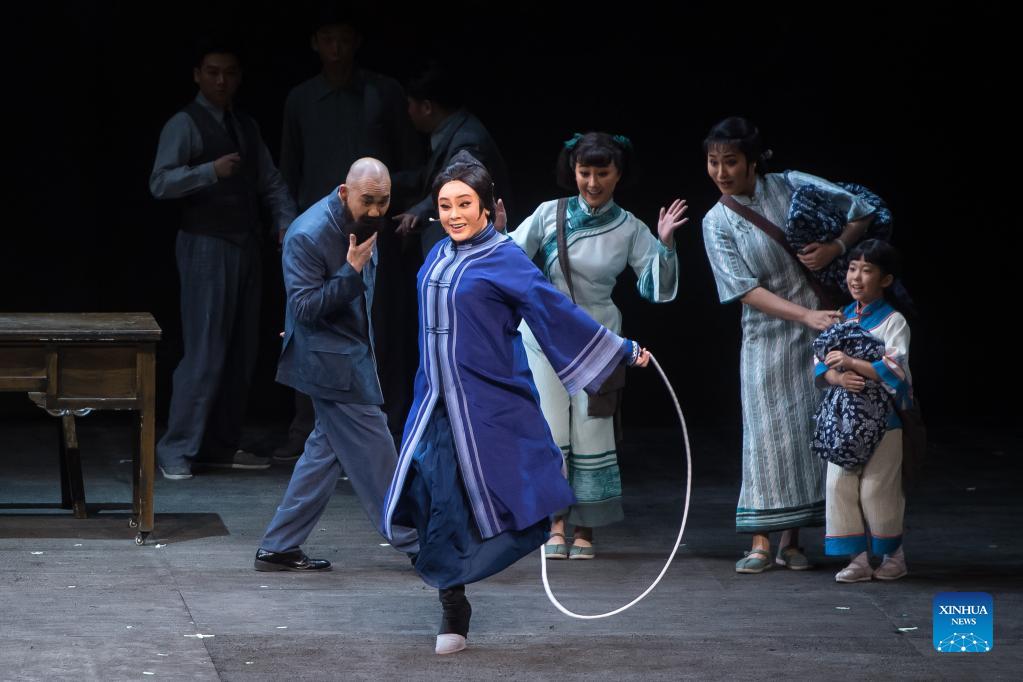 Peking opera "Mother" is performed during the 17th China Theater Festival in Wuhan, central China's Hubei Province, Oct. 9, 2021. The 17th China Theater Festival, a national theater and performing arts event, opened on Saturday in Wuhan. Altogether 31 plays of various genres from across the country, including Peking Opera and Kunqu Opera, are scheduled to be performed at the festival that runs through Oct. 28. (Xinhua/Xiao Yijiu)