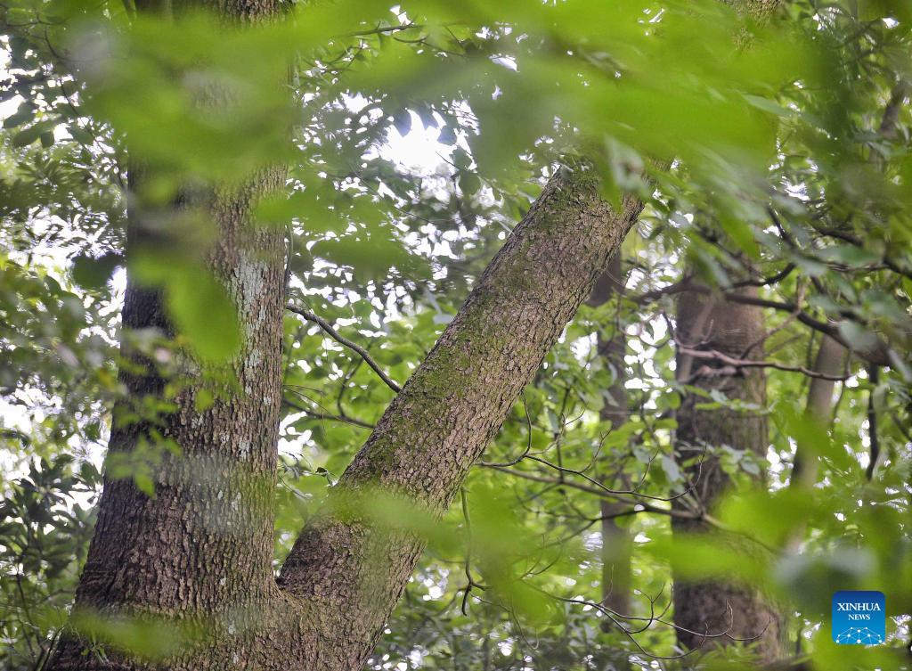 Photo taken on Oct. 8, 2021 shows an emmenopterys henryi tree in the Longquanshan city forest park in Chengdu, southwest China's Sichuan Province. A total of 35 emmenopterys henryi trees have been found in the city forest park. The plant is under China's second-class protection. (Xinhua/Liu Kun)