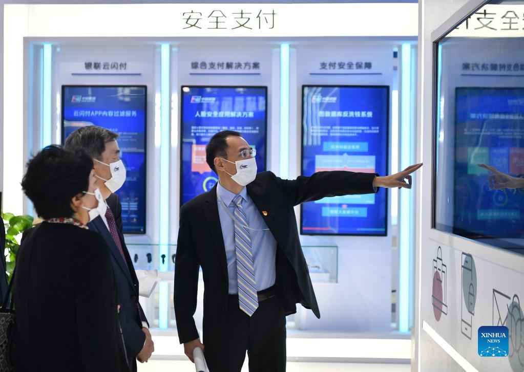 Visitors view the cybersecurity expo of 2021 China Cybersecurity Week in Xi'an, capital of northwest China's Shaanxi Province, Oct. 11, 2021. This year's edition of China's annual cybersecurity publicity week runs from Oct. 11 to 17 nationwide. (Xinhua/Zhang Bowen)